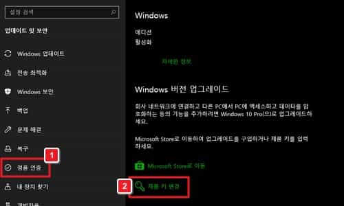 STEP 2. 업데이트 및 보안-제품 키 변경