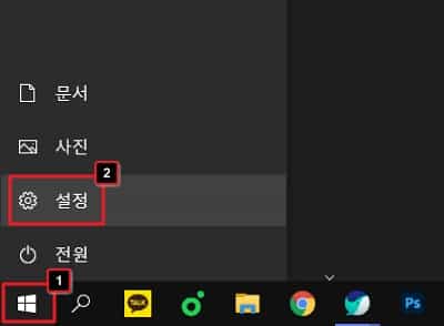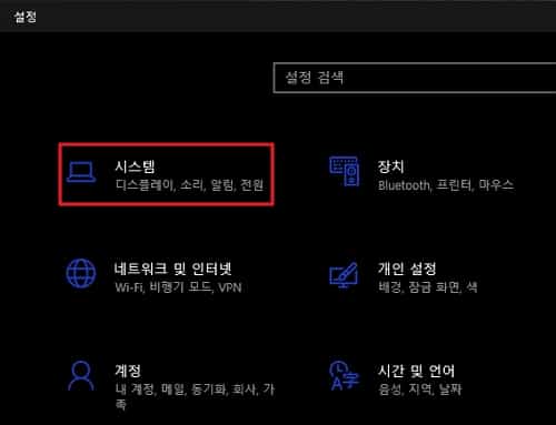 먼저 바탕화면 좌측 하단의 윈도우 아이콘을 클릭합니다. 이후 보이는 톱니바퀴 모양의 설정 버튼을 클릭하고 윈도우 설정에 접속합니다. 처음으로 보이는 화면에서 시스템 메뉴에 접속합니다.