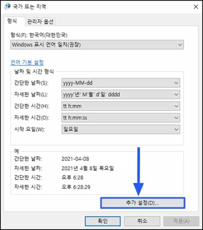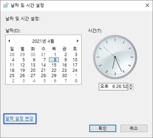 다른 시간대에 대한 시계 추가 버튼을 클릭하고 날짜 및 시간 탭에서 날짜 및 시간 변경, 달력 설정 변경 순으로 접속합니다. 요일 한 번 설정하는데 굉장히 많은 작업을 필요로 합니다.