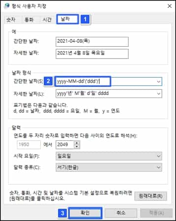 적용이 됐다면 위 이미지와 같이 날짜 옆에 요일이 표시됩니다.