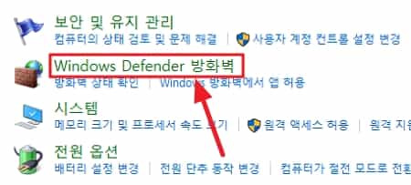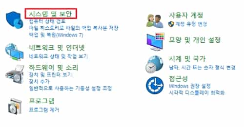 시스템 및 보안 탭으로 접속하게되면 윈도우 방화벽을 설정할 수 있습니다.