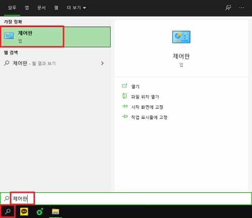 먼저 방화벽을 해제하기 위해서는 제어판에 접속해야 합니다. 검색에서 제어판을 검색하고 접속합니다.