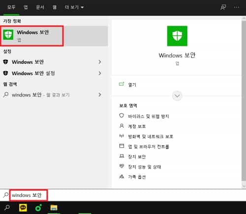 윈도우 방화벽을 끄지는 않지만 특정 앱만 허용할 수도 있습니다. 먼저 윈도우 보안으로 접속합니다.