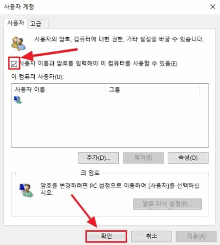 위 이미지와 같이 사용자 이름과 암호를 입력해야 이 컴퓨터를 사용할 수 있음에 있는 체크를 해제하면 비밀번호를 따로 입력하지 않아도 자동으로 기기에 로그인을 할 수 있습니다.
